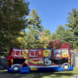Fire truck jump and slide will impress and inspire all little future firemen at your next event! Young rescuers can ring the bell and slide in through the cab as they race to fight the blaze, or rescue a stray kitty. The jumper offers a huge center slide and an ample jumping area for hours of entertainment and future firemen training. Can fit 8-10 kids at once. 11’x 30' x’12’